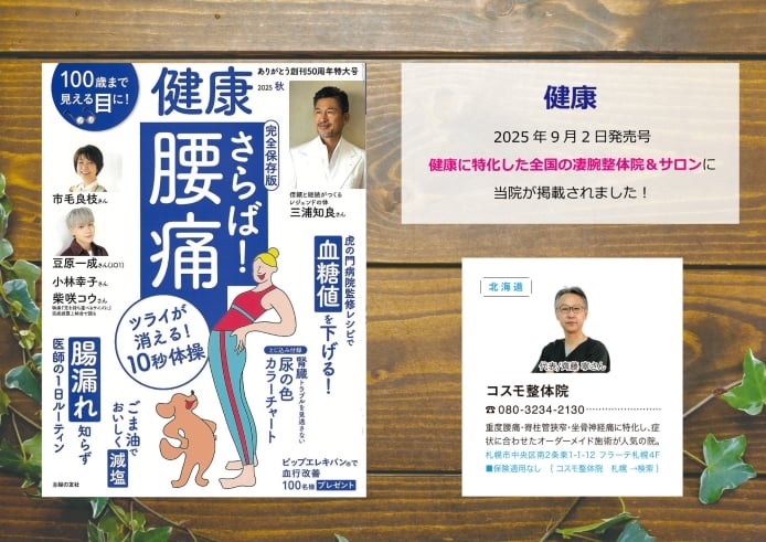 本当に辛かった腰や足の症状が改善され先生には感謝です。