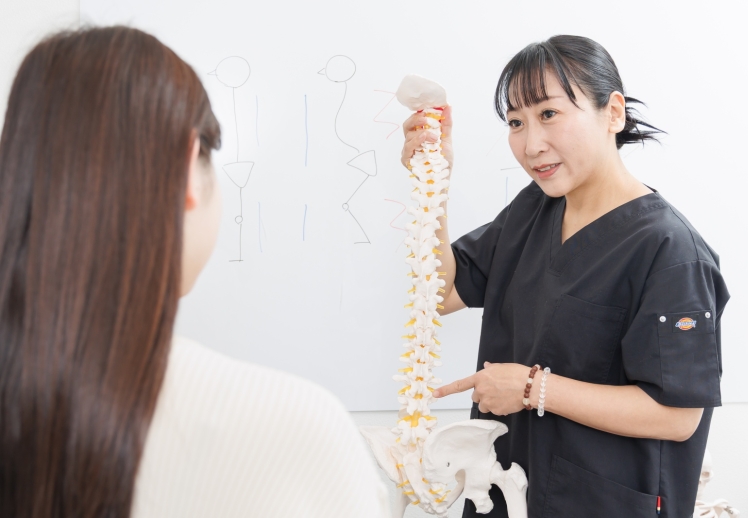 施術では、解剖学に基づいた丁寧な評価を行い、不調の原因を分かりやすく説明してくださいます。