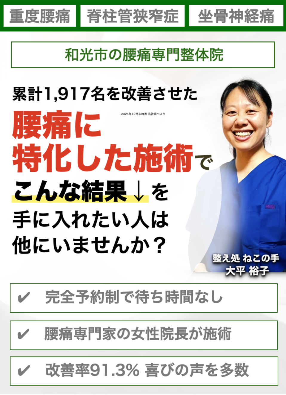 整え処 ねこの手院長の大平裕子と申します。
