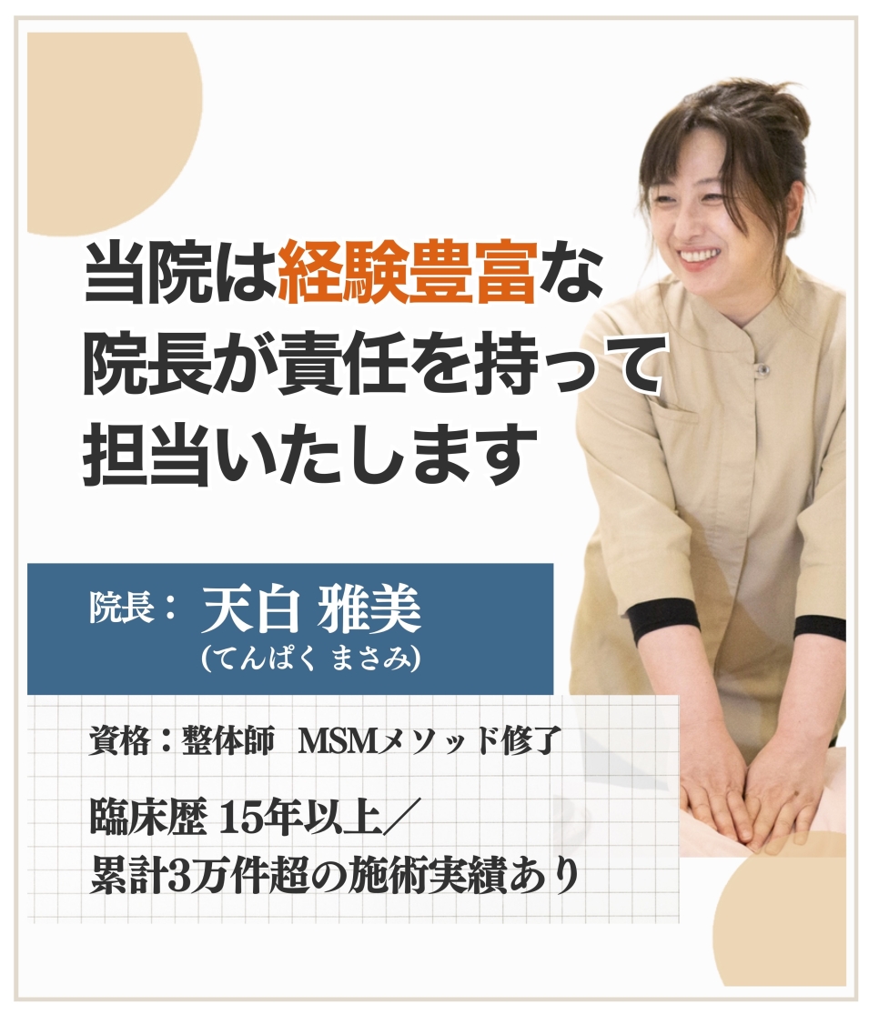 もしあなたが、病院に行っても原因が分からず、湿布と薬でたらい回しにされているのであれば、彼女の治療はピッタリだと思います。ぜひ一人で悩まず、一度彼女のところに言ってください。今より楽になることは私が保証します。