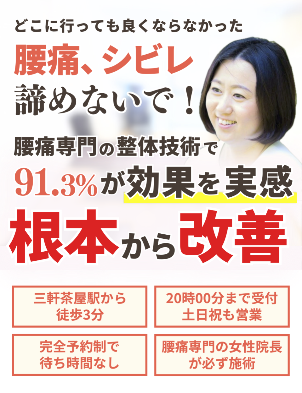 2つ目は、初回の施術を試していただければ、根本的に「改善できるんじゃないか」とあなたに可能性を感じてもらえると自信があるからです。
