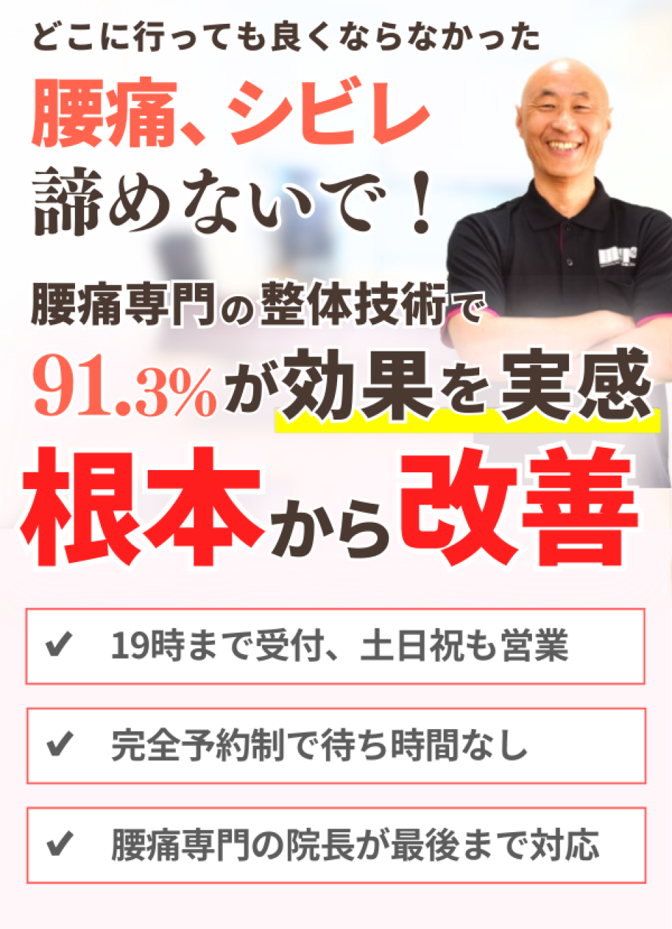 2つ目は、初回の施術を試していただければ、根本的に「改善できるんじゃないか」とあなたに可能性を感じてもらえると自信があるからです。