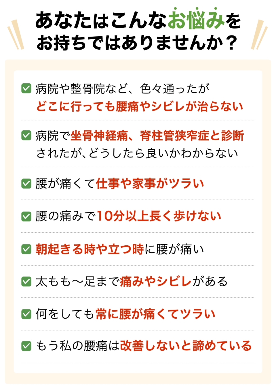 もし、あなたの体の痛みが原因で何か困っているなら、私に治療させてください。